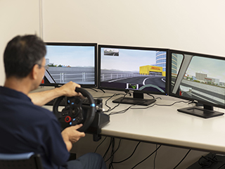 教育体制ドライビングシミュレータを用いて動作能力や判断能力を評価します