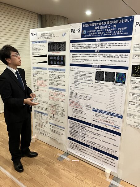 研修医1年目・竹原先生は12月6日に金沢で開かれました第30回日本神経精神医学会にて、統合失調症様症状を呈した蘇生後脳症の1例を報告しました。蘇生後脳症は多く経験しますが、統合失調症様の精神症状を呈した報告は稀であり、会場に集まった他施設の方からも多くの質問がありました。特に、精神科専門の先生方からの質問が多く、活発な討議となりました。竹原先生は丁寧に症例提示をした上で、答えられておりました。