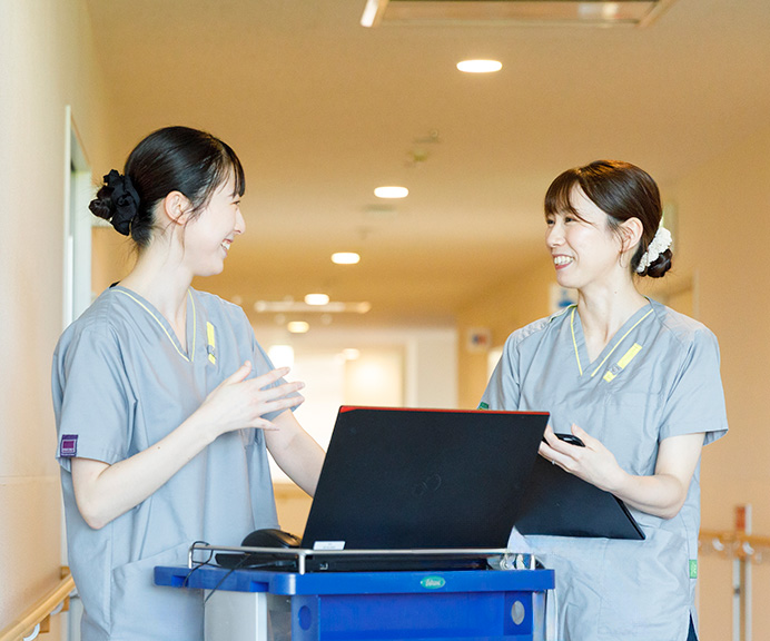 看護長や副看護長をはじめ、部署すべてのチームが新人看護師の情報を共有し、病棟全体で新人を育てる体制を整えています。